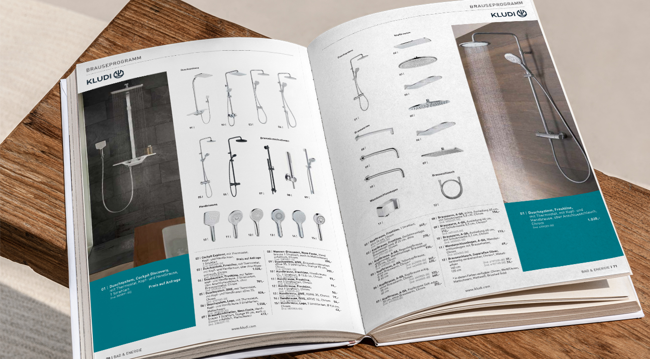Die Frauenthal Service AG vertraut bei Katalogen und Magazinen für die Zielgruppe Installateure und Sanitärberater auf unsere Printkompetenz. In einem durchgängigen Projektprozess übernehmen wir die komplette Umsetzung – vom Layout über den Satzspiegel bis hin zur Produktion. Auch verschiedene Themenmagazine wie Bad und Energie werden inklusive aller redaktionellen Arbeiten zuverlässig realisiert. Der aktuelle Bäderparadies-Katalog ist zudem online abrufbar.
